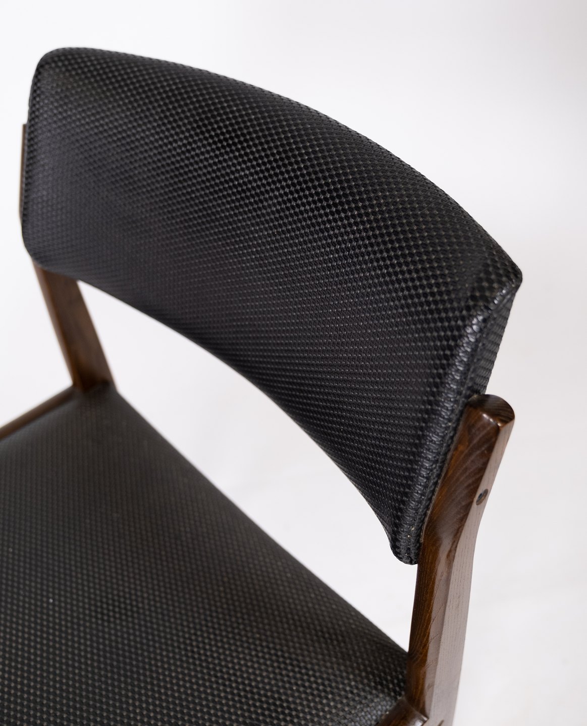 Sæt af fire Spisestuestole - Sort Betræk - Mørkt Træ - Dansk Design - 1960