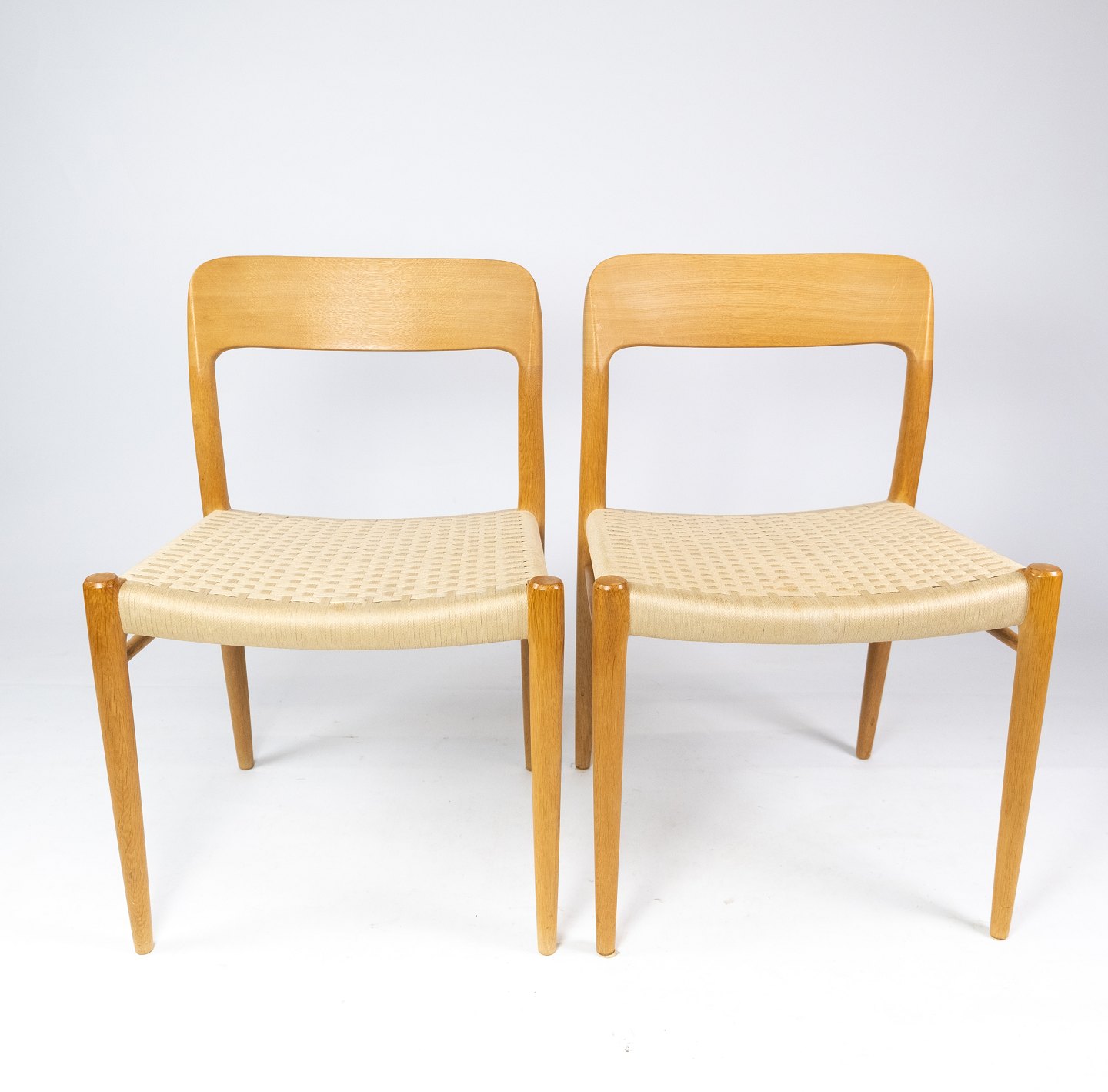Et Sæt Af Fire Spisestuestole -Model 75 - Lys Eg - Papirflet - N.O. Møller - 1960