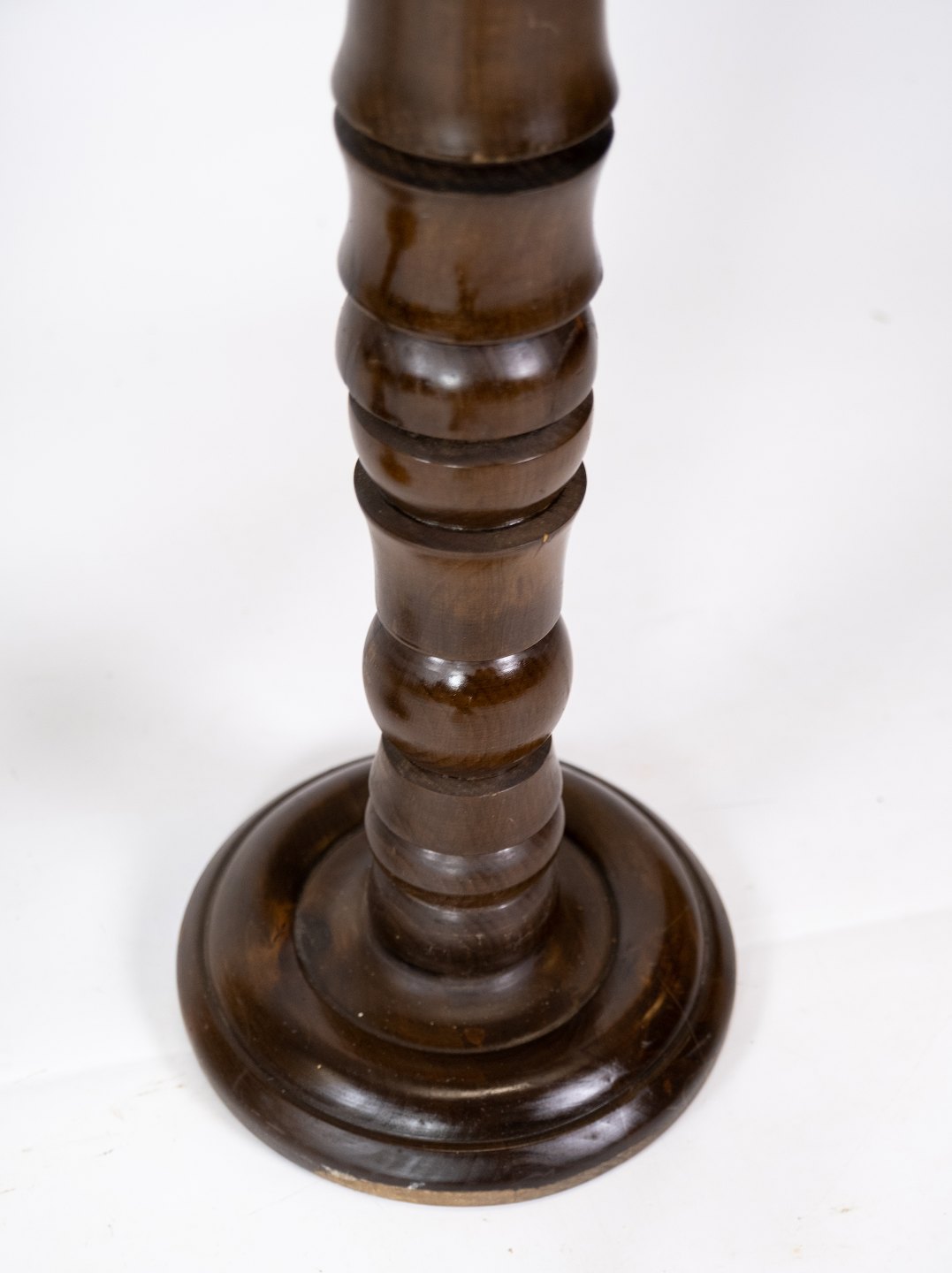 Beskrivelse: Et par piedestaler af mørkt træ, i flot antik stand fra 1920erne.