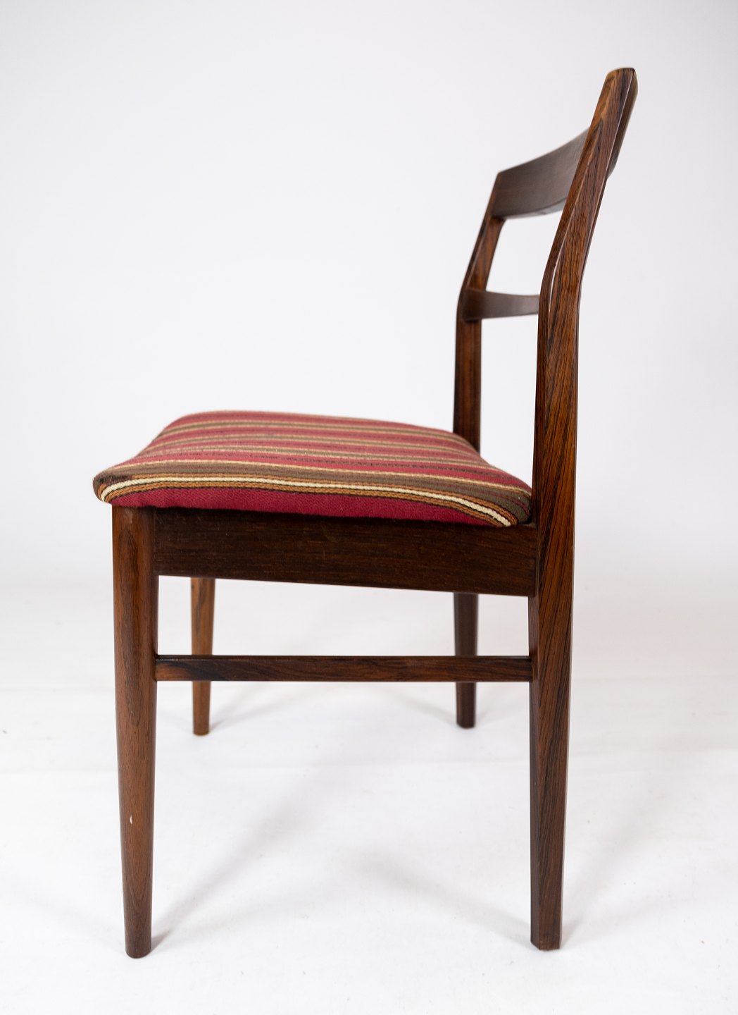 Sæt Af Fire Spisestuestole - Palisander - Stribet Stof - Dansk Design - 1960