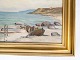 Beskrivelse: Oliemaleri med strandmotiv og forgyldt ramme, signeret A.T. 1947.
