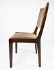 Set of five dining room chairs in dark wood and dark fabric of danish design manufactured by Farstrup in the 1960s.