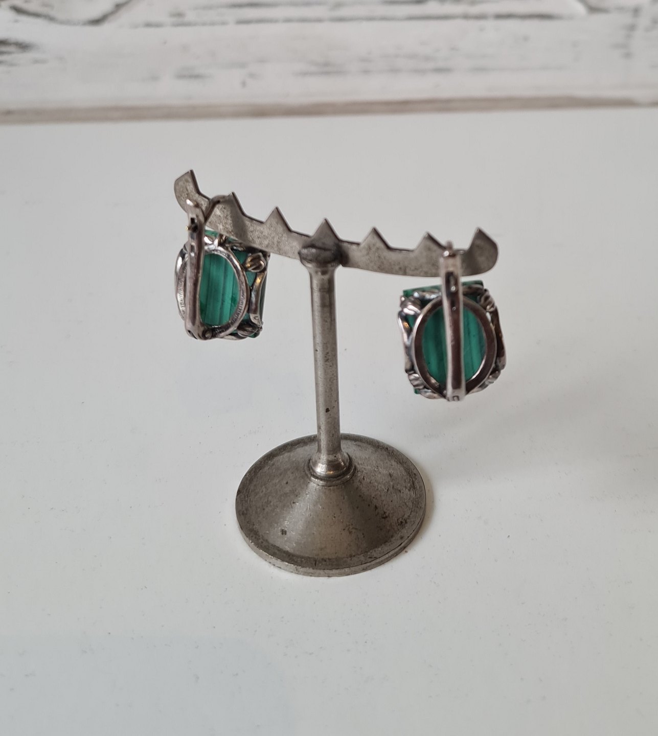 Beskrivelse: Vintage øreringe i sølv og malakit
