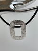 Beskrivelse: Sølvvedhæng "Spænde"med struktur fra Toftegaard med kæde / halsring af naturgummi, der lukkes med lås af sølv. Smykket er ubrugt.