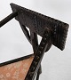 Beskrivelse: Armstol af mørkt træ med udskæringer og polstret med lyst stof, i flot antik stand fra 1880.