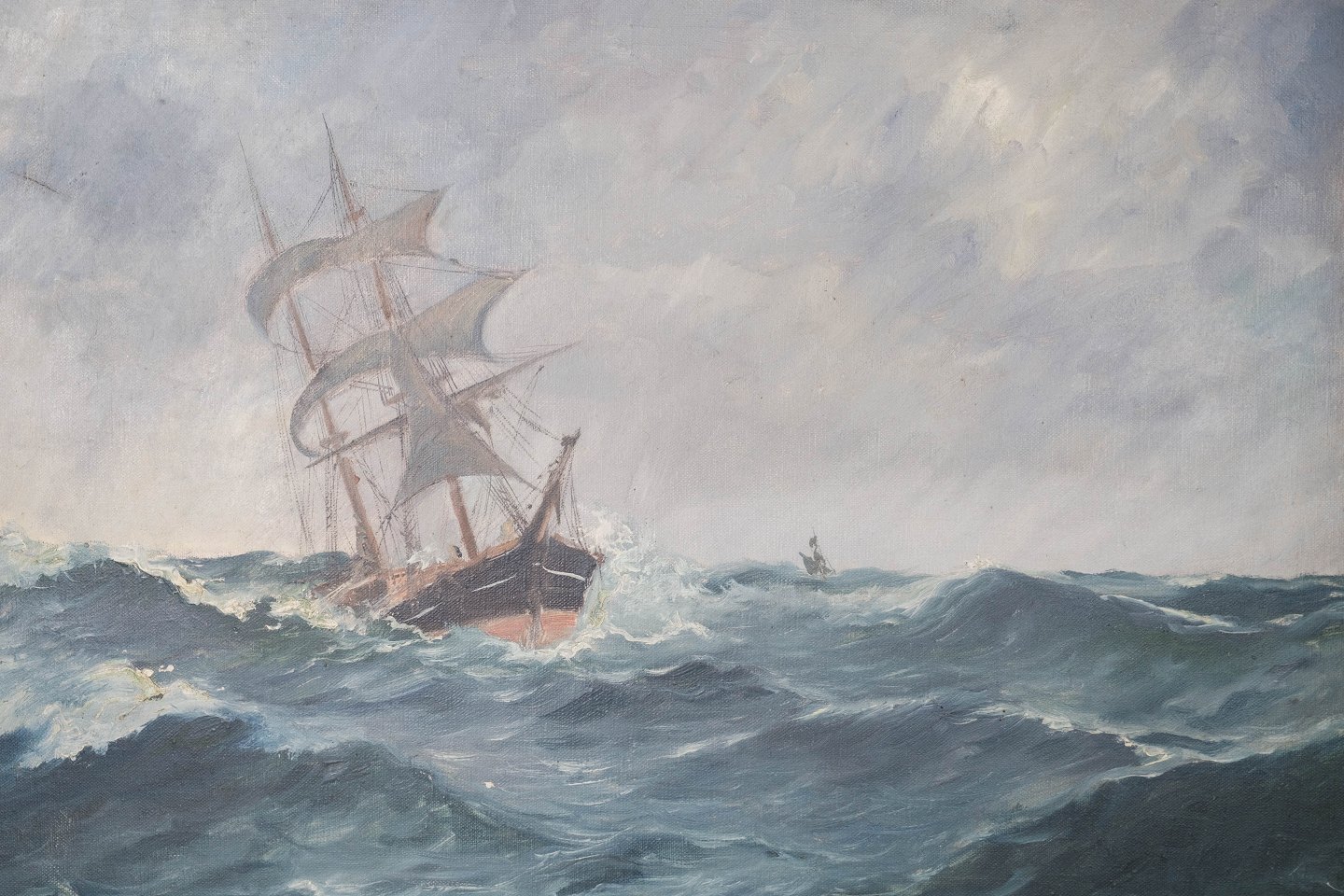 Description: Oil painting with marine motif with gilded frame by Frederik Ernlund 1879-1957.