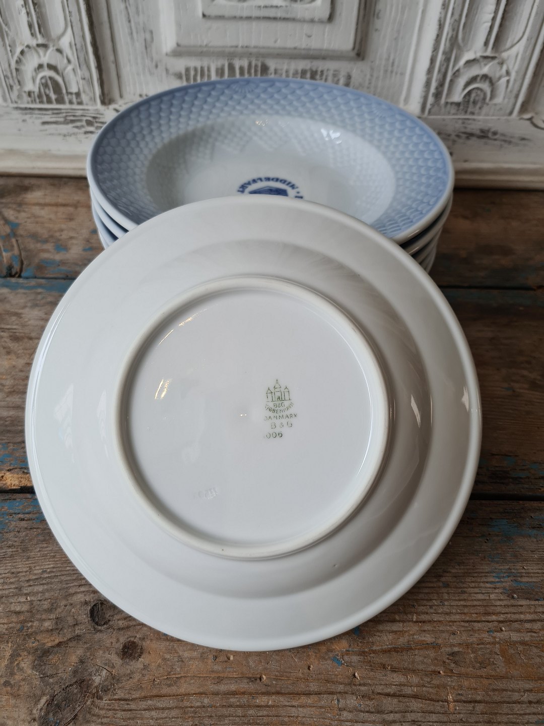 Beskrivelse: B&G Blå Tone dessert dyb med logo " Hotel Middelfart"