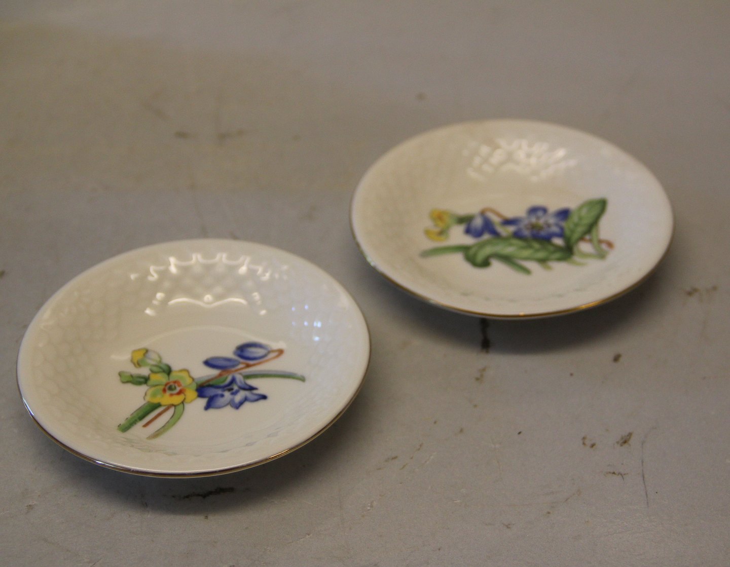Bing & Grøndahl Creme porcelæn, blå og gule forårsblomster, form 356