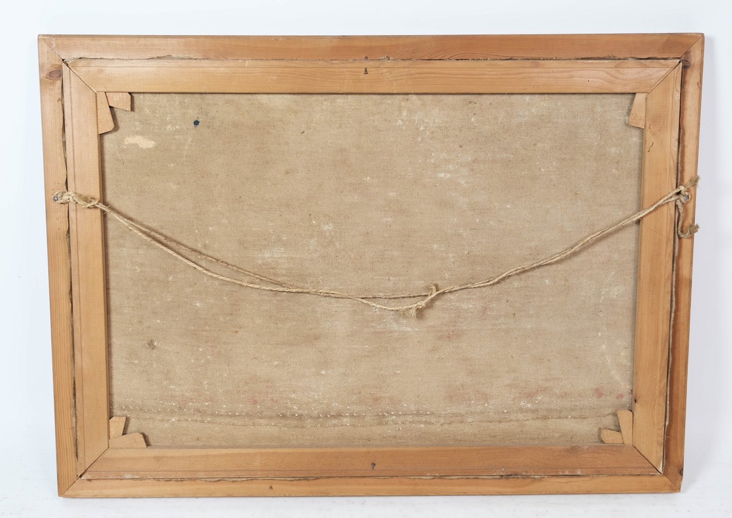 Description: Painting on canvas with nature motif and gilded frame, signed CK from the 1950s.