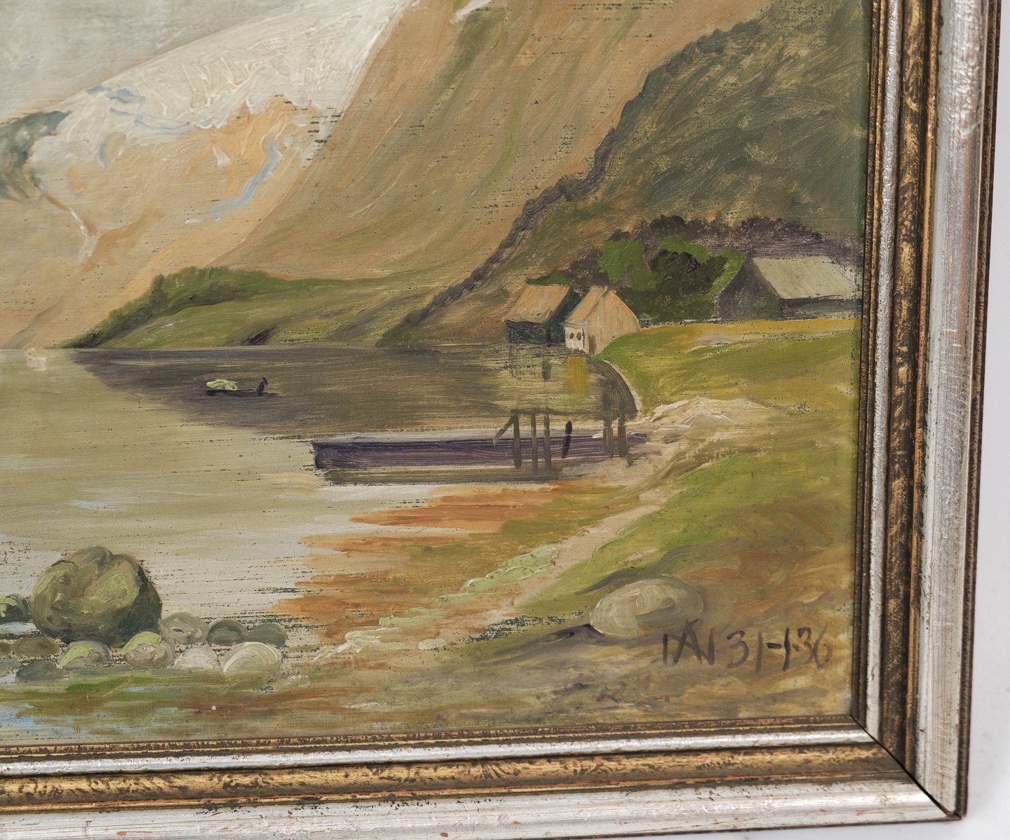 Beskrivelse: Maleri på lærred med natur motiv og forgyldt ramme, signeret AN 31-36 fra 1930erne.