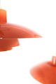 To orange højglans PH4 pendler designet af Poul Henningsen og fremstillet hos Louis Poulsen i 1950erne.