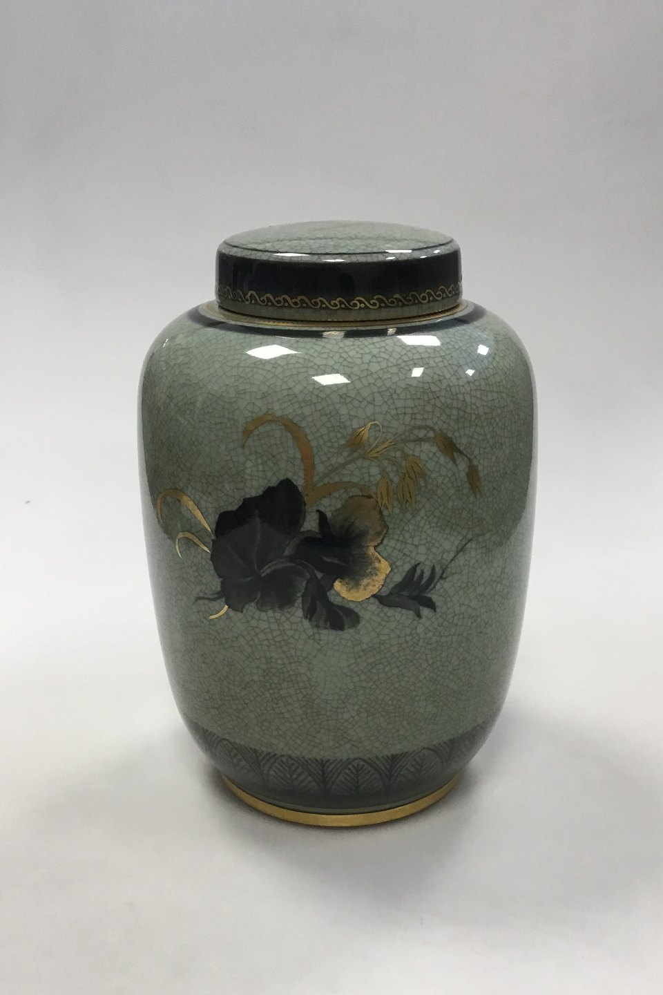 Royal Copenhagen Grøn Krakeleurne med blomsterdekoration med guld No 5010/888