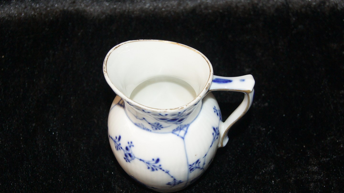 Beskrivelse: Royal Copenhagen Mussel #Halvblonde med guldkant #Flødekande