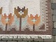 Beskrivelse: Fladvævet kelimtæppe, antageligt fra Sverige, hvorfra det er indkøbt, med stiliserede tulipaner i smukke brændte farver: beige, orange, gule og brune toner. Tæppet har forskellige farver på hver sin side, formenligt grundet udsættelse for sollys. Den ene side er mest gul, grå, grøn, beige, mens den anden side er mere orange, brun, grøn, beige.