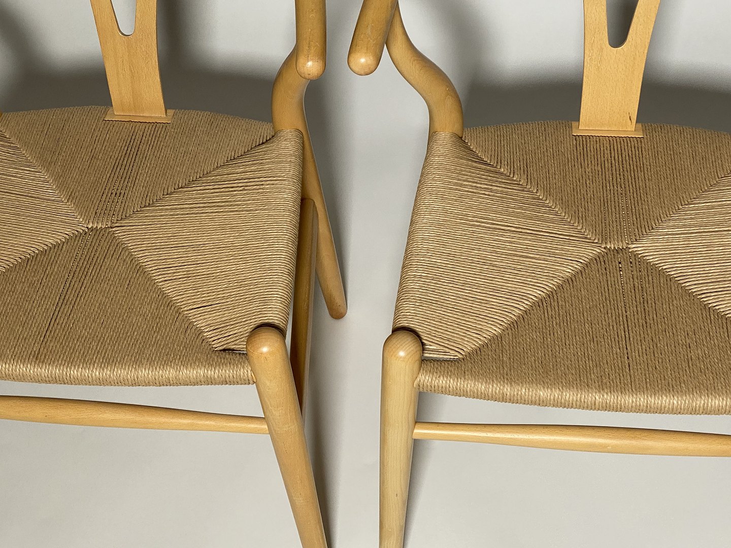 Description: Hans J. Wegner ikonische Y-Stuhl von 1949. Esszimmerstuhl aus buche mit Papiergarn geflecht. Produziert bei Carl Hansen & Son. Model CH24.