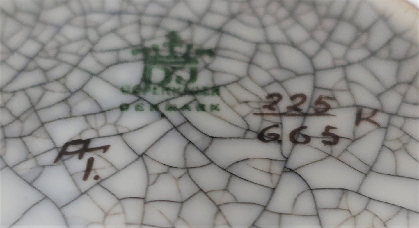 Beskrivelse: Dahl Jensen. Craquele lågvase. Model 225-665. Højde 16 cm. (1 sortering)