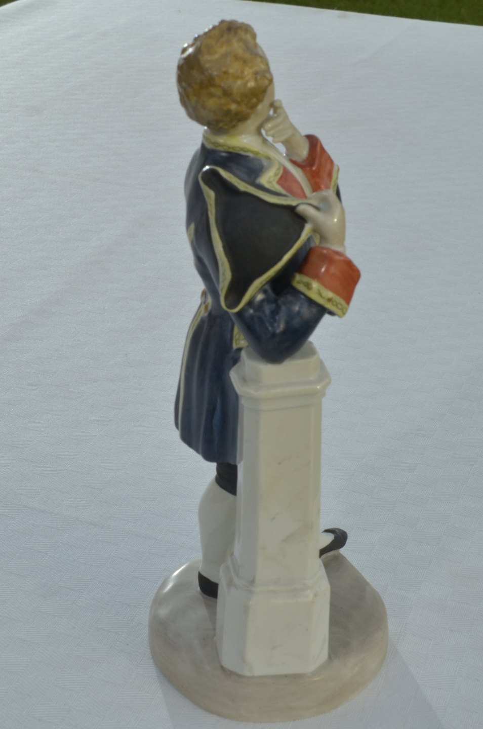 Beskrivelse: Bing og Grøndahl porcelænsfigur. B&G . "Henrik" i komedien Maskerade af Ludvig Holberg ( 1684 - 1754 ) . Figur nr. 8001. Højde 18cm. 1. sortering, fin hel stand.
