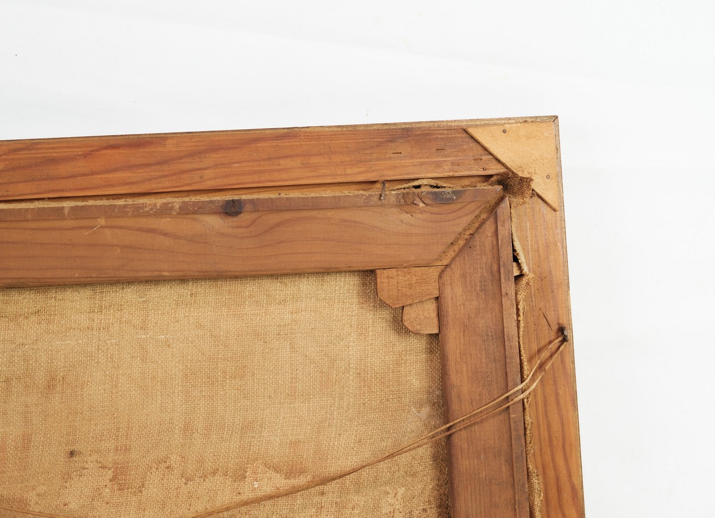 Olie maleri med bonde hus og guld ramme fra omkring 1926. 5000m2 udstilling
