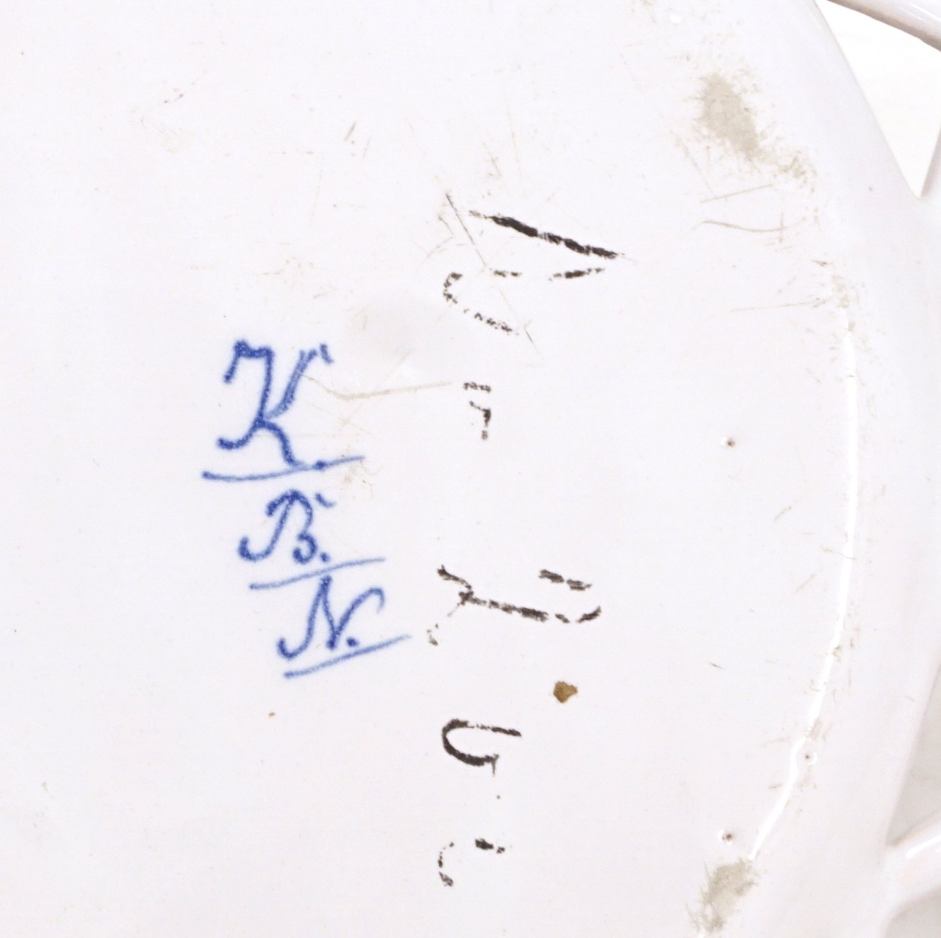 Blådekoreret fletrand fajance tallerken med stiliseret blomst. Kiel, periode Buchwald, 1768-71. Signeret K/B/N. Fremstår urestaureret. D: 25,5cm