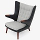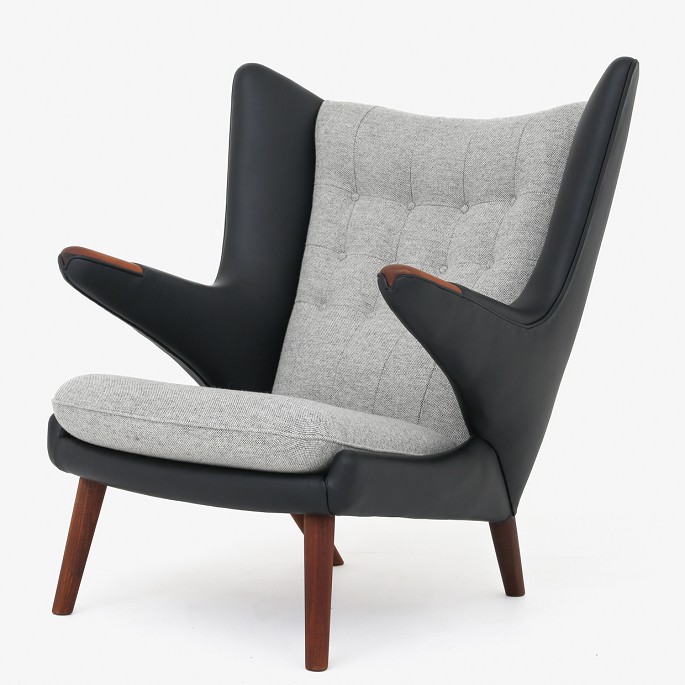 AP 19 - Reupholstered Papa Bear chair in Hallingdal 65 wool (colour 116) and black Savanne leather (semi-aniline leather). KLASSIK offers the Papa Bear chair in textile and/or leather of your choice. Please contact us for more information.