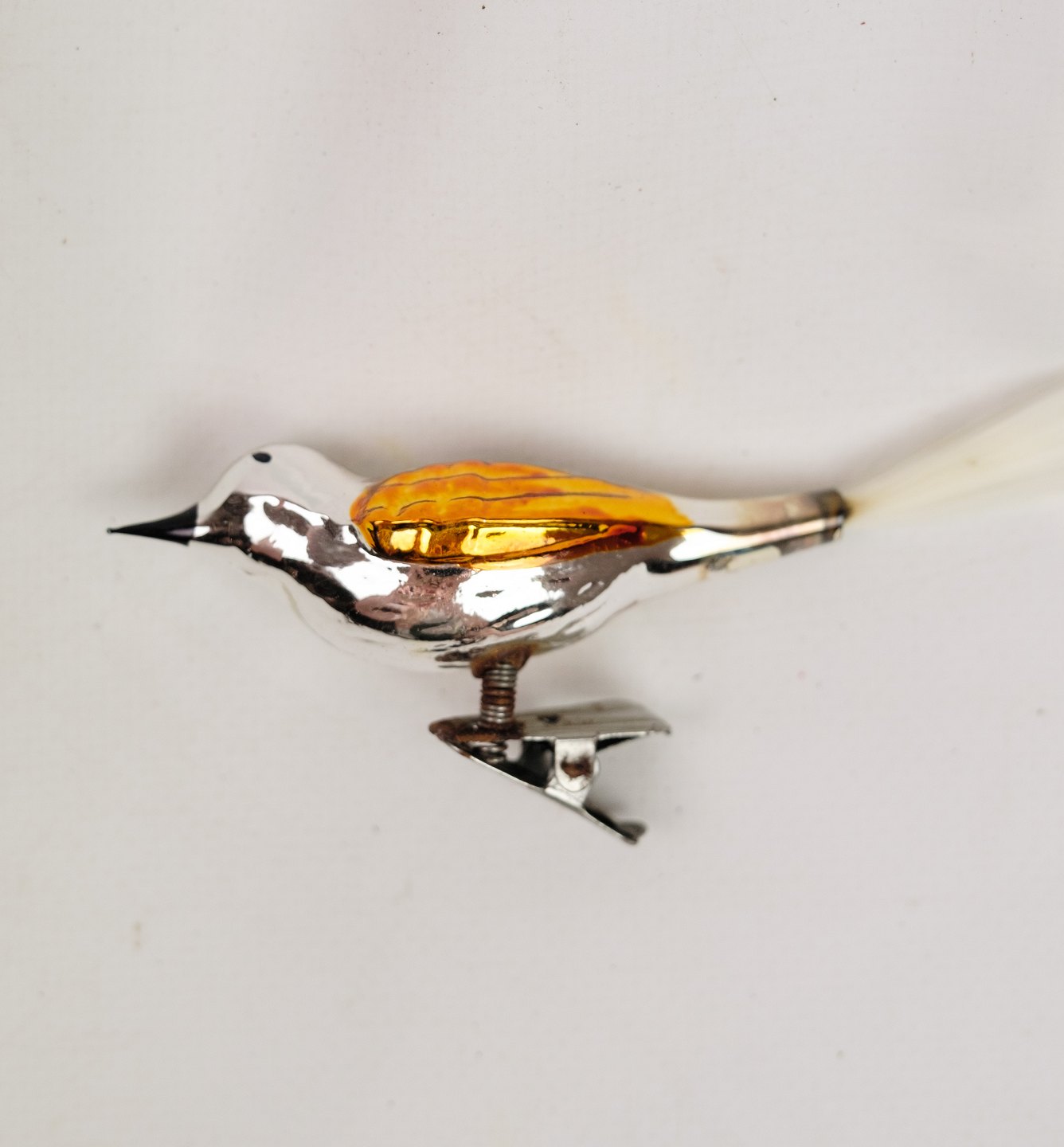 Description: Old Christmas decoration of hand-painted glass bird from around the 1930s.