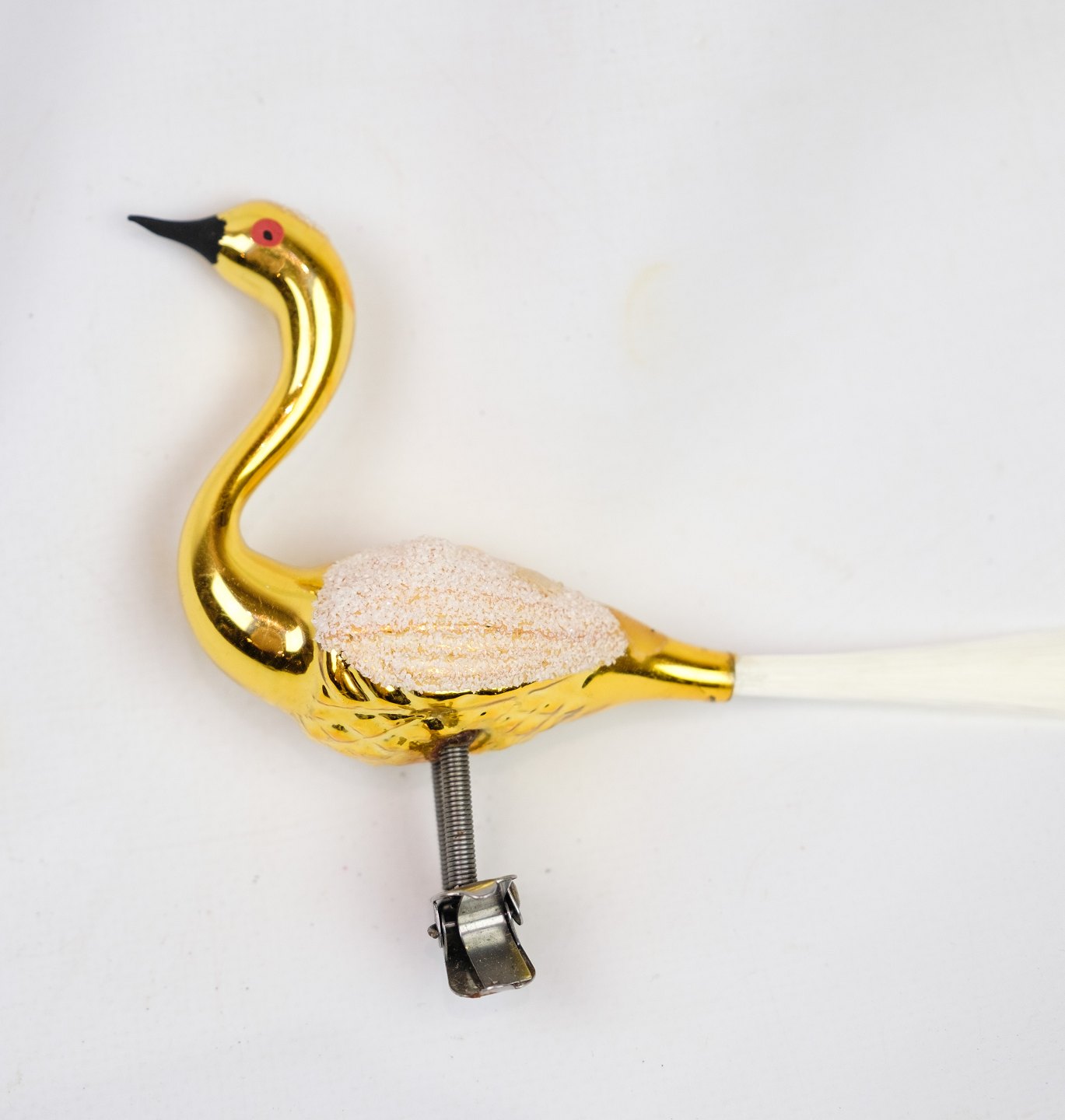 : Håndmalet glas fugl af gammel julepynt fra omkring år 1930'erne.