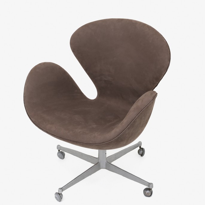 AJ 3323 - 'Svanen' på hjul og med vippefunktion. Nybetrukket i Royal Nubuck (farve: Cinnamon) anilin-læder. Formgivet 1957-58.