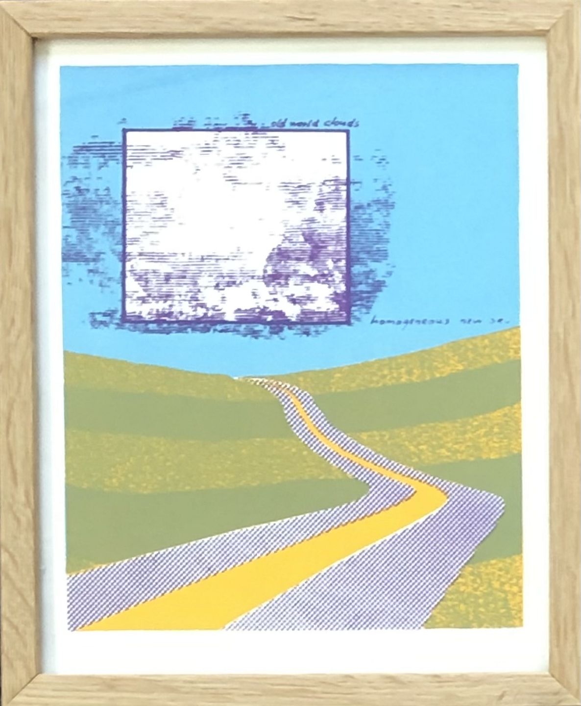 Beskrivelse: Litografi i lille egetræsramme. David Hockney stil usigneret