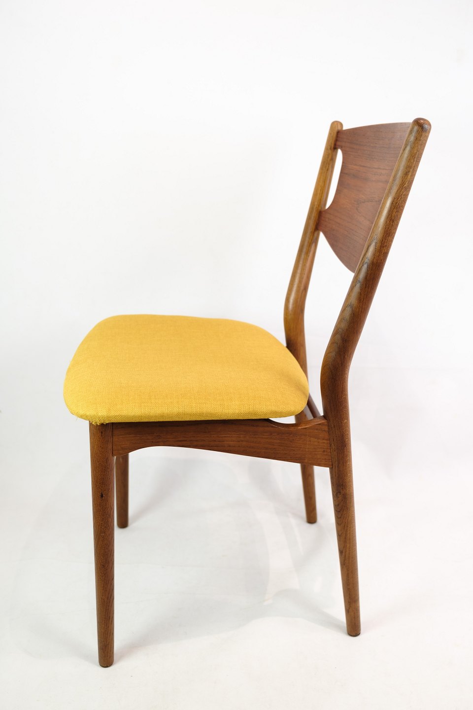 Sæt af 4, "model 42A" designet af Helge Sibast, Eg & teak, gult stof, 1953