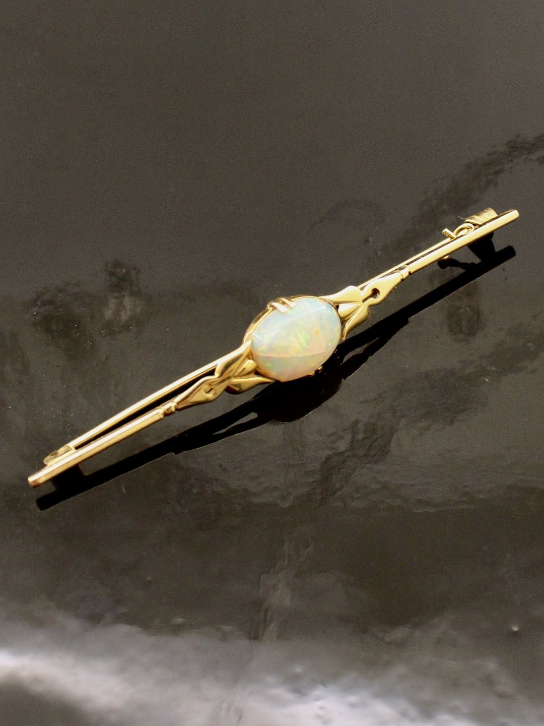 : 14 carat gold brooch L. 6 cm. with opal subject no. 509296