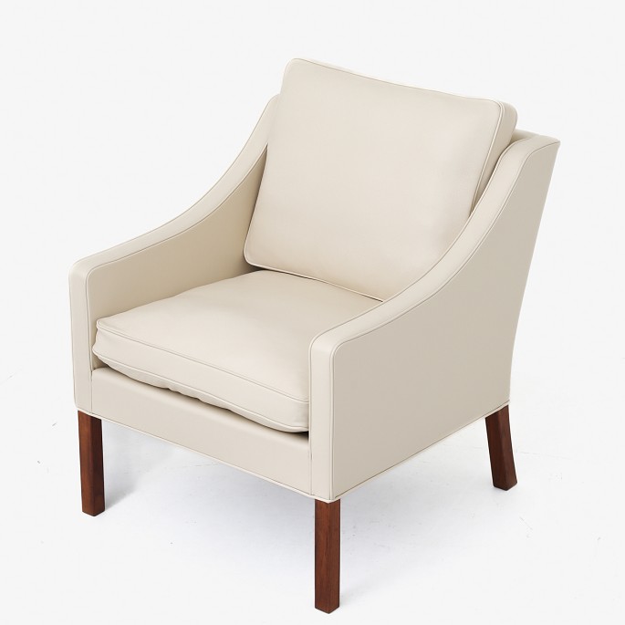 BM 2207 - Nybetrukket lænestol i 'Prestige' semi-anilinlæder (farve: Cream). KLASSIK tilbyder stolen i læder eller tekstil efter eget valg.