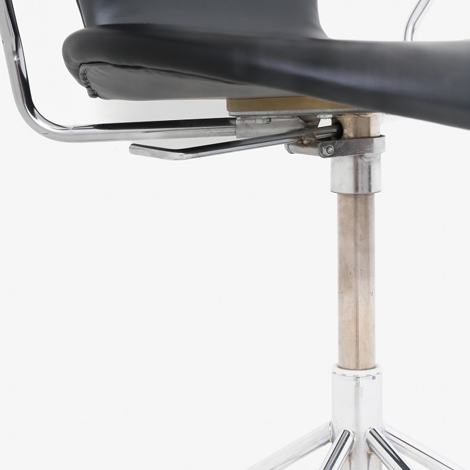 AJ 3217 - 'Syver'-kontorstol m. armlæn, nybetrukket i sort 'Elegance' anilin-læder på nyere stel af stål. KLASSIK tilbyder stolen i læder efter eget valg. Kontakt os venligst for mere information.