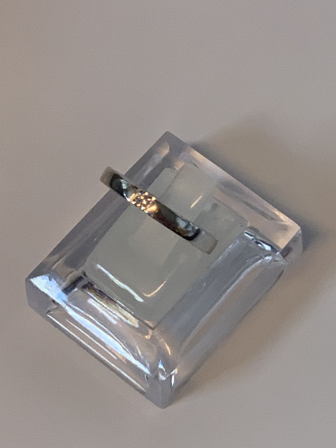 Beskrivelse: 14 karat hvidguld, alliancering med brillant