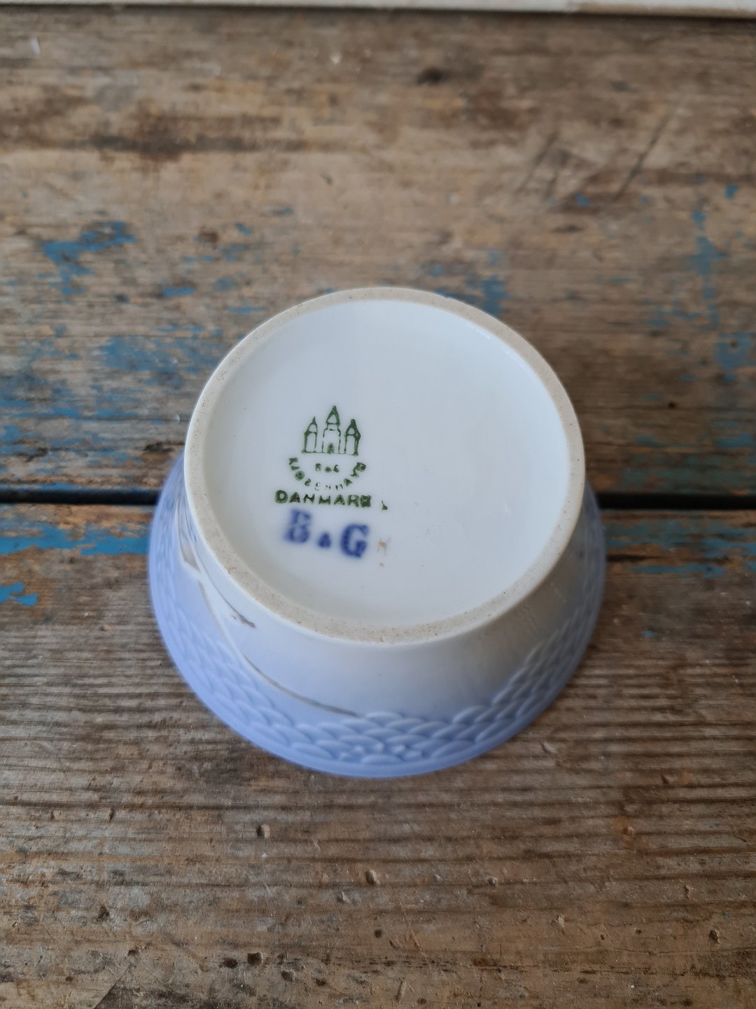 Beskrivelse: B&G Mågestel med guld tesi skål