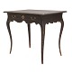 Sortdekoreret rokoko skrivebord med læderindlæg på plade. Sverige ca. år 1760. H: 74cm. Plade: 85x60cm