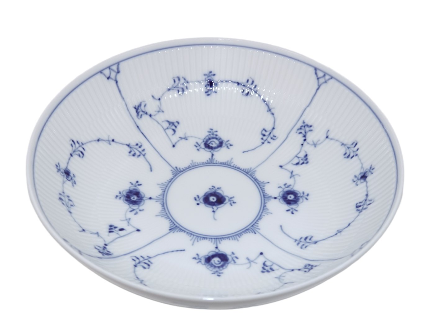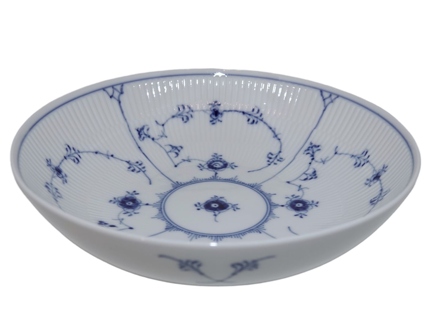 Beskrivelse: Royal Copenhagen Musselmalet Riflet, rund kartoffelskål.