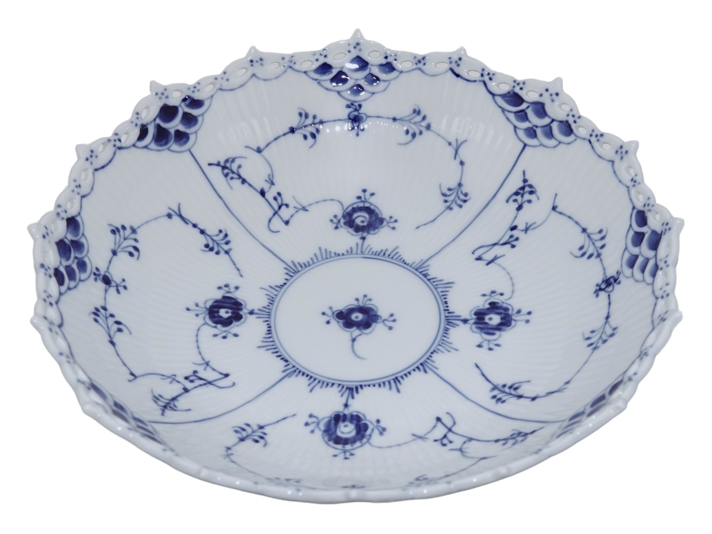Beskrivelse: Royal Copenhagen Musselmalet Helblonde, rund skål.