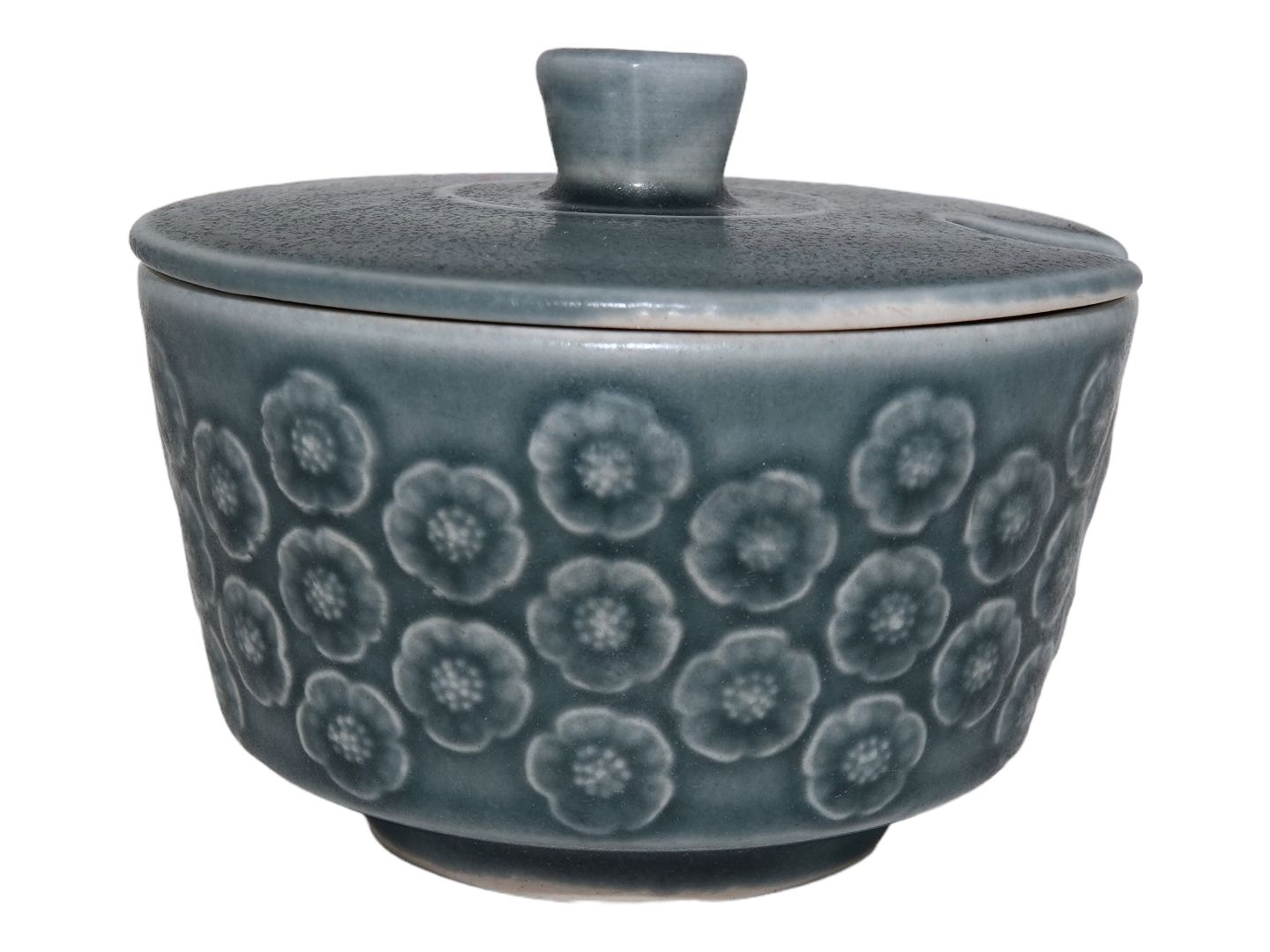 Description: Kronjyden Azur stoneware, lidded sugar bowl.