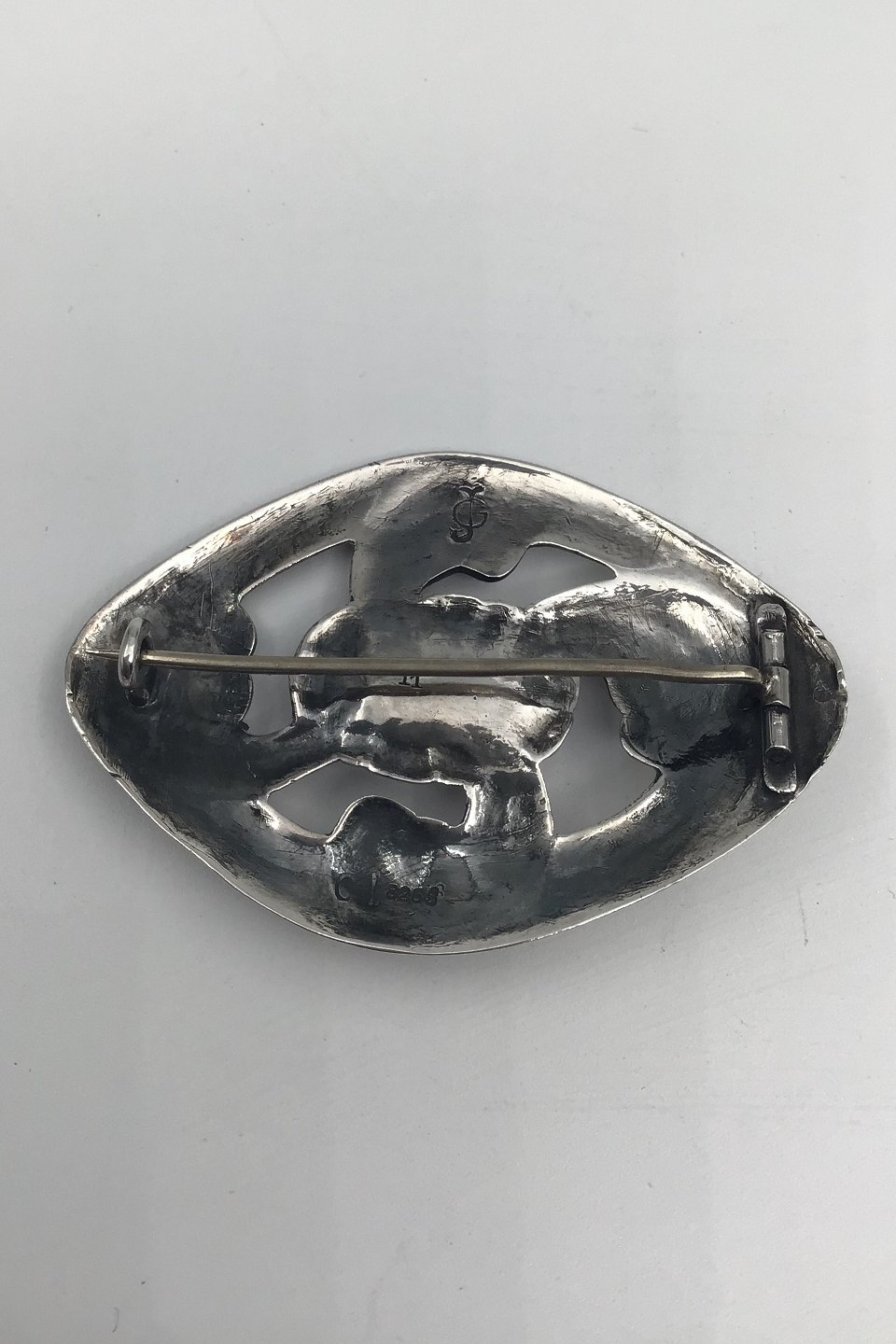 Description: Early Georg Jensen Silver Brooch No 11, Amber (1904-08) Measures 4 cm x 5.6 cm (1.57 inch x 2.20 inch) Weight 16.9 gr /0.60 oz Design Georg Jensen