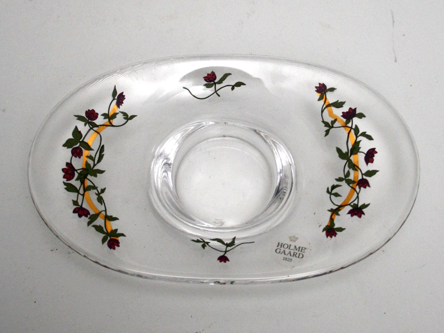 Beskrivelse: Holmegaard, Golden Christmas kalenderstage 2003, Lilla blomsterranker. Designet af Michael Bang/Peter Svarrer og Jette Frölich. Længde 18,5 cm. Bredde 12 cm. Højde 3,5 cm. Pris: SOLGT