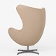 AJ 3316 - Nybetrukket 'Ægget'-lænestol i naturlæder/vegetallæder med ny fod af aluminium. KLASSIK tilbyder stolen i læder efter eget valg. Kontakt os venligst for mere information.