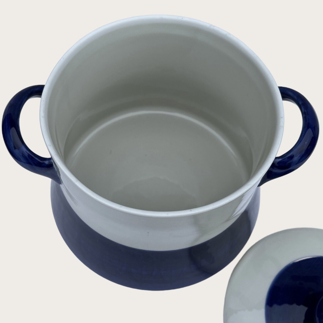 Description: Rřrstrand, Blue Koka, Pot with lid #6, 21cm high, 19cm in diameter, Design Hertha Bengtson *Perfect condition*
