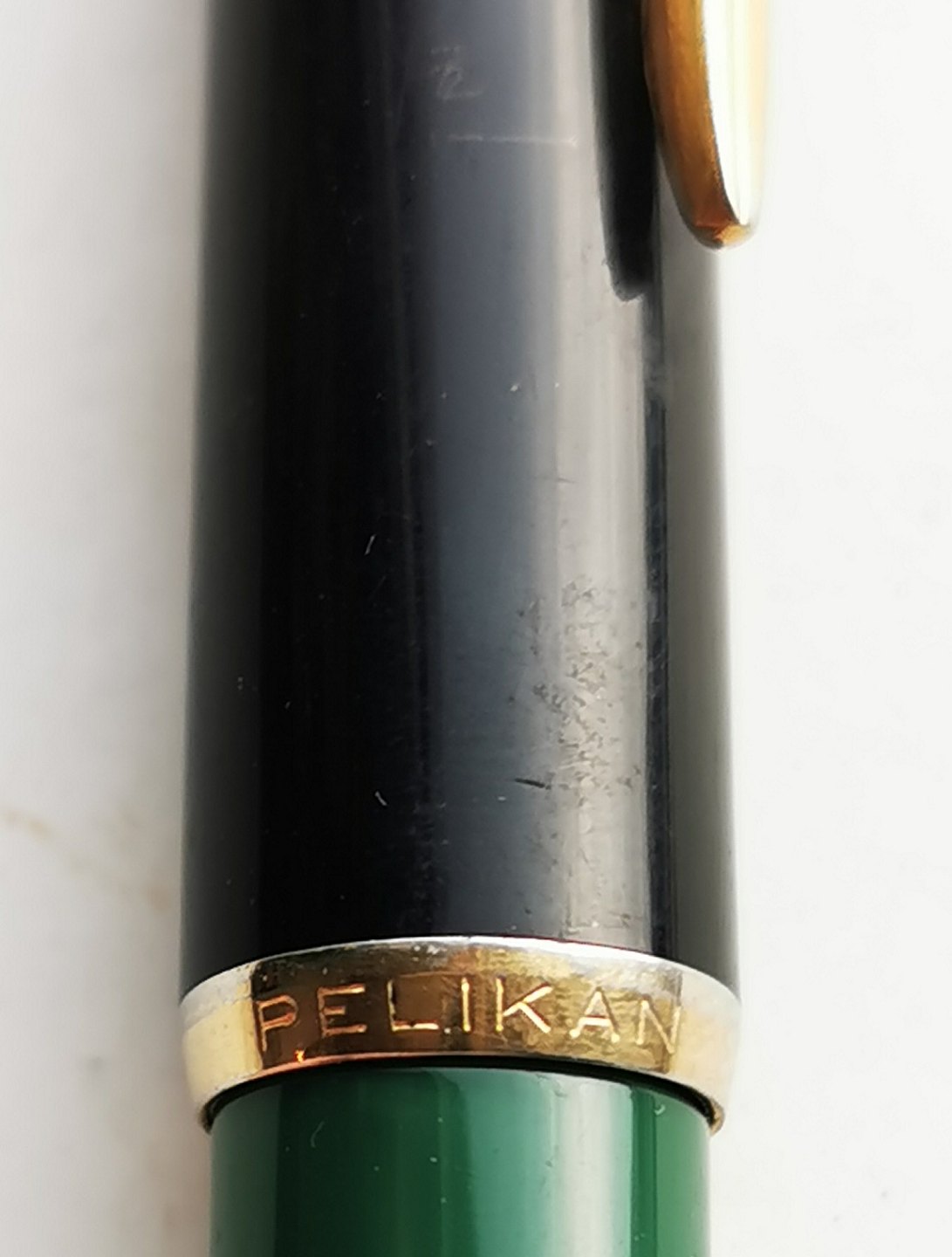 Beskrivelse: Grøn Pelikan fyldepen med sort hætte. Fremstillet i Tyskland i 1970'eene. Pistol filler. Fremstår I god og funktionsdygtig stand. Klar til at blive brugt. L.13,5 cm.