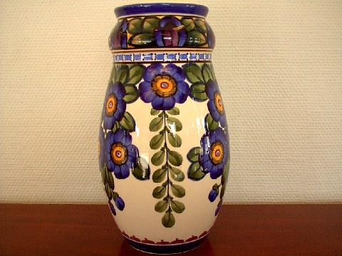 Description: Large Aluminia Vase with beautiful decoration number 1212/1083. Height 29.5 cm. Perfect condition. In the 1880s when production at the Royal Copenhagen factory was dropping to a dangerously low level they were taken over by Aluminia (founded 1863), successful makers of earthenware, and since that time the two ranges, earthenware and porcelain, have been running in tandem.