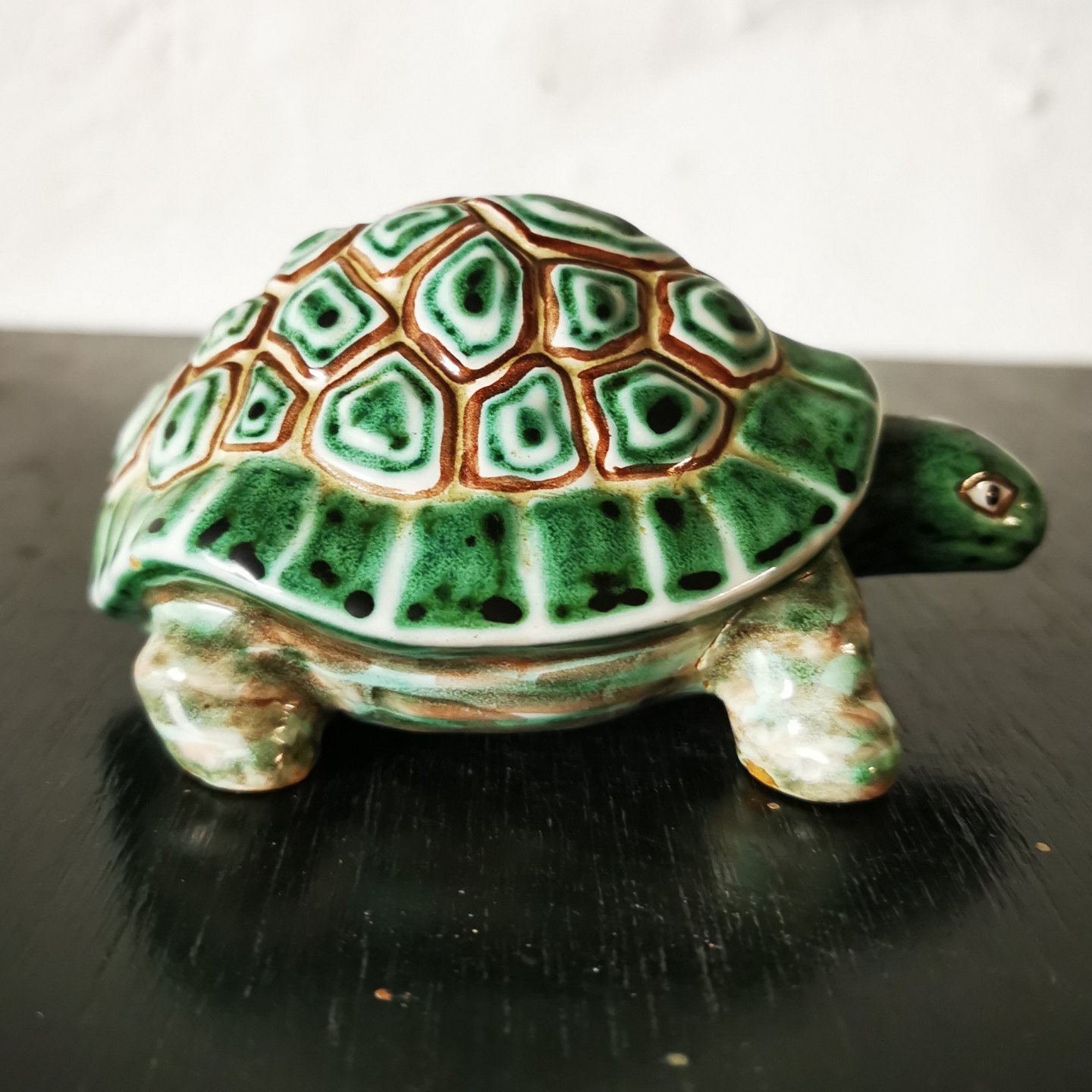 Beskrivelse: Charmerende figur af skildpadde i keramik fra Lauritz Hjorth. Fremstår i god stand uden skader eller reparationer. Fabriksmærket på bunden samt model nummer S3. Mål: H. 6 cm L. 11,5 cm og 8 cm bred.
