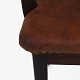 Armstol i bejdset bøg med originalt, patineret anilinlæder og messingsøm. Stemplet fra producent.