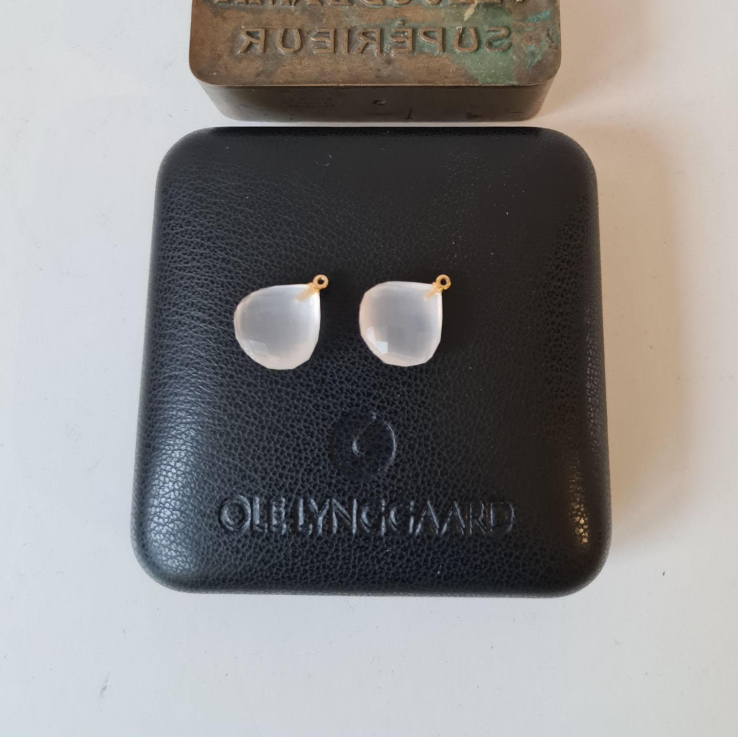 Beskrivelse: Ole Lynggaard rosa kvarts drops med øsken i 18 kt guld