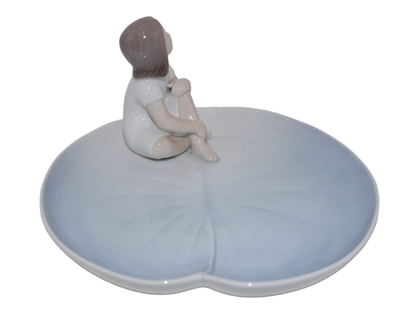 Beskrivelse: Bing & Grøndahl figur, Tommelise på fad / åkande.