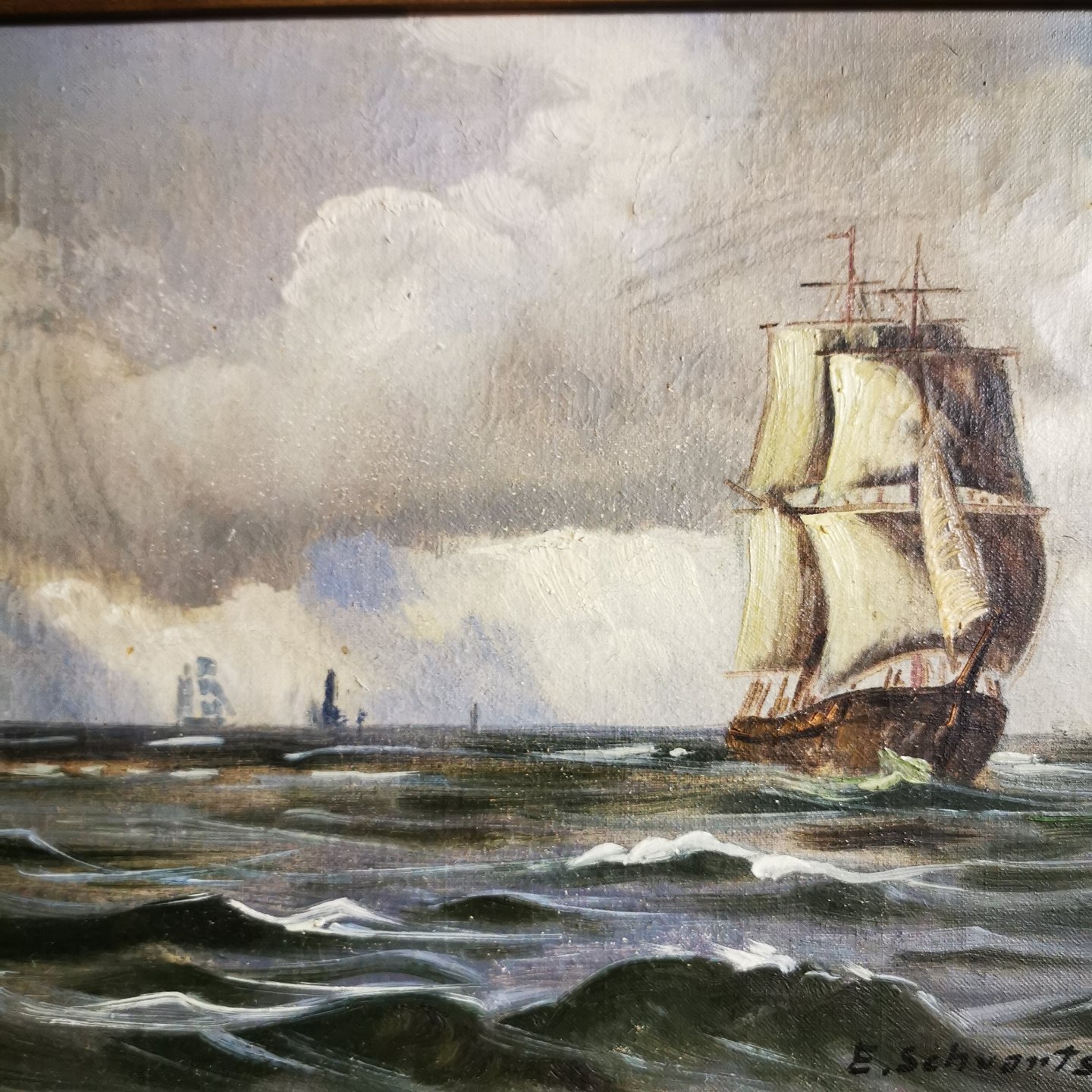 : Marine maleri i guldramme. Signeret i nederste højre side.