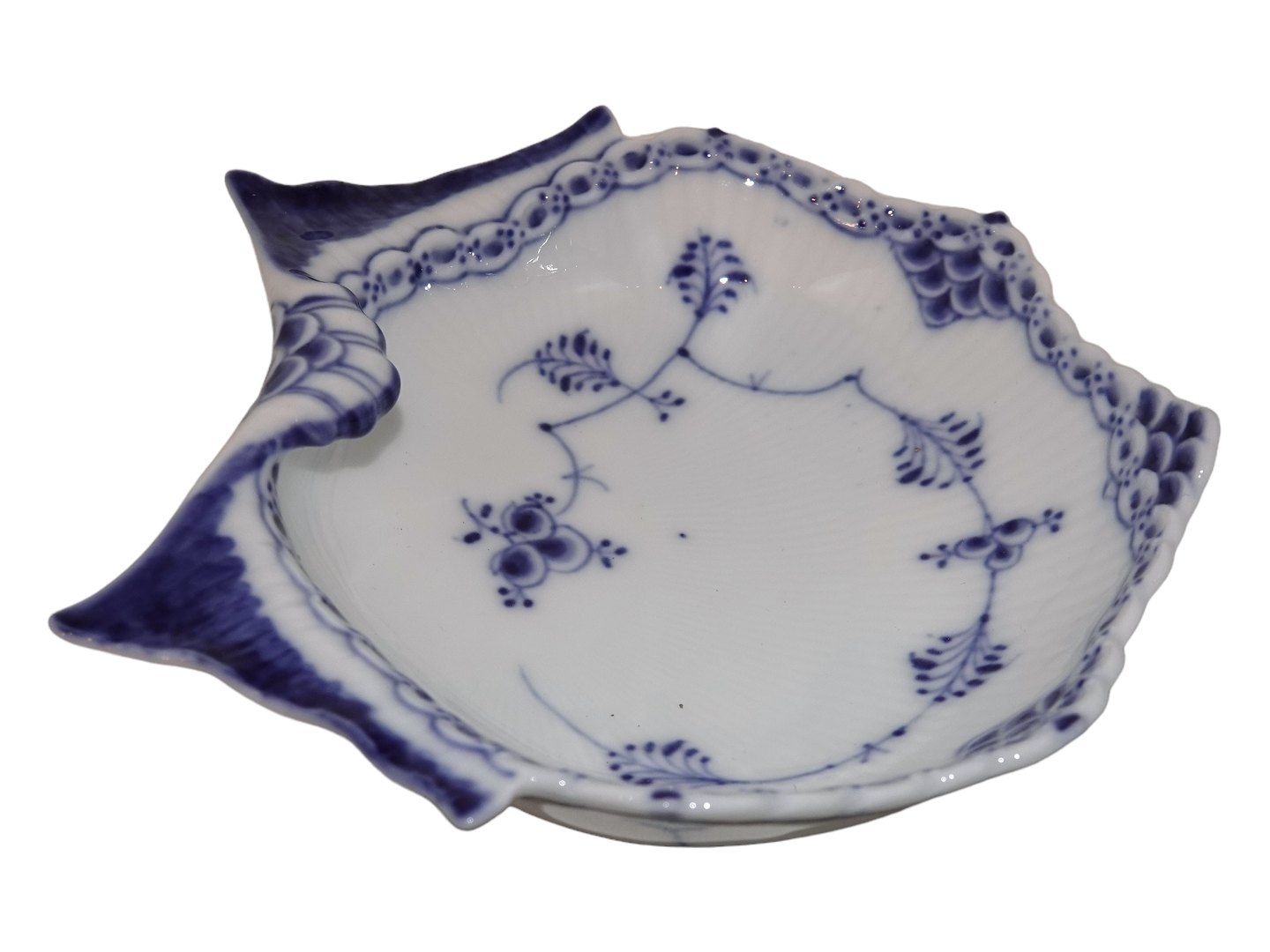 Beskrivelse: Royal Copenhagen Musselmalet Halvblonde, kageskål.